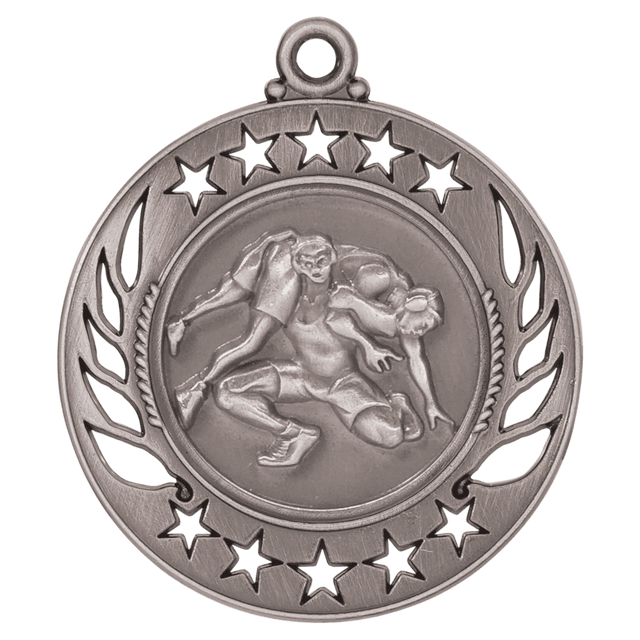 2 1/4" Antique Silver Wrestling Galaxy Medal
